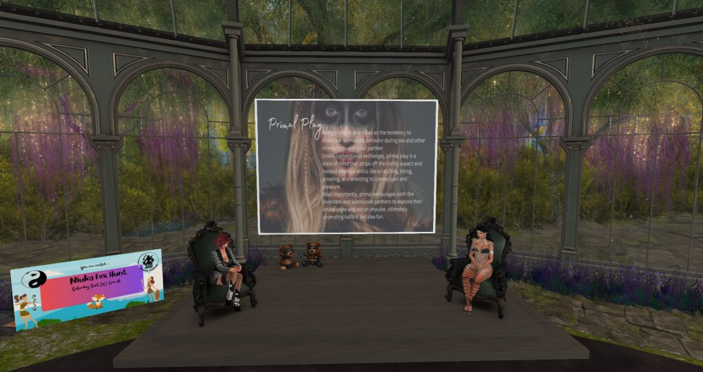 For those of you who may not know me, I am a switch who happily calls her RL partner Daddy and calls my SL partner slave, imp, and pain slut. Today I want to mindfully describe for you what my primal play feels like. I would like to know by the end of my story today if you can picture yourself feeling these ways and how it may fit into your own dynamic. Like most delicious things in our lives we all have a unique sense of what primal play means.. I would love to hear about any similarities and differences in your play once I am done describing these very personal experiences.