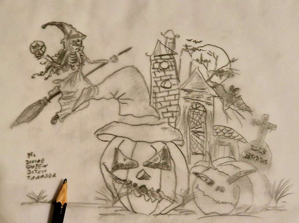 This image was drawn by slave, Gendius, at My request for a festive Halloween image.