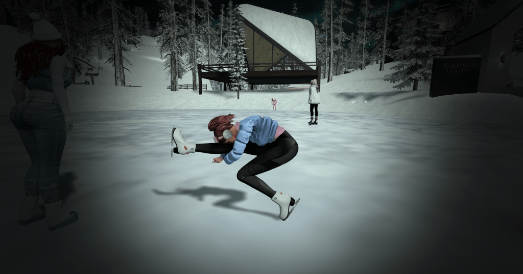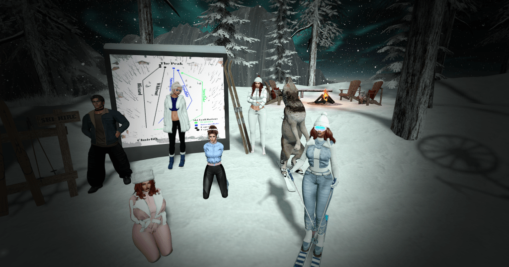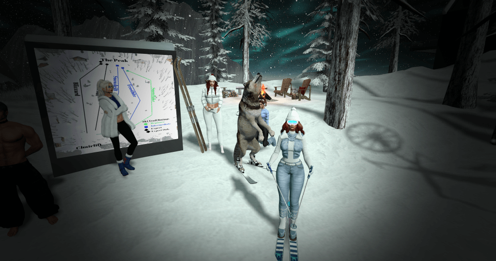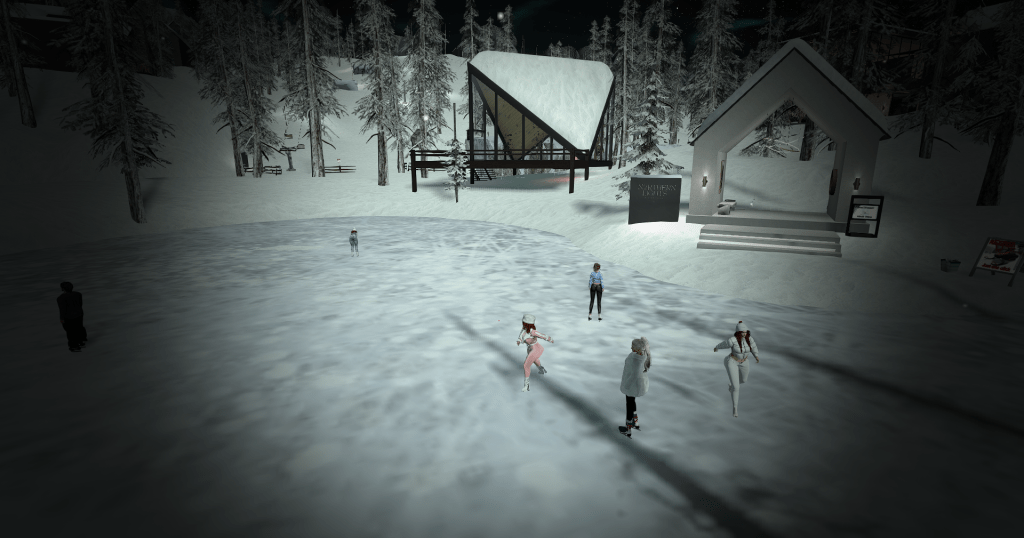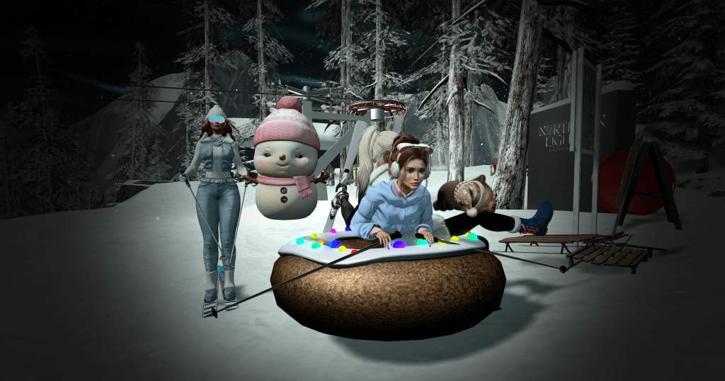 We took the ski lift up the mountain to soak in the views, then hit the trails: some of us on skis, others swapping to sledges, snowboards, or even a giant donut. Highlights included dodging the occasional region restart (promptly taking refuge at the DSF ice rink gazebo) and the unforgettable sight of Talis-the-wolf launching off a ski ramp fully strapped into skis.