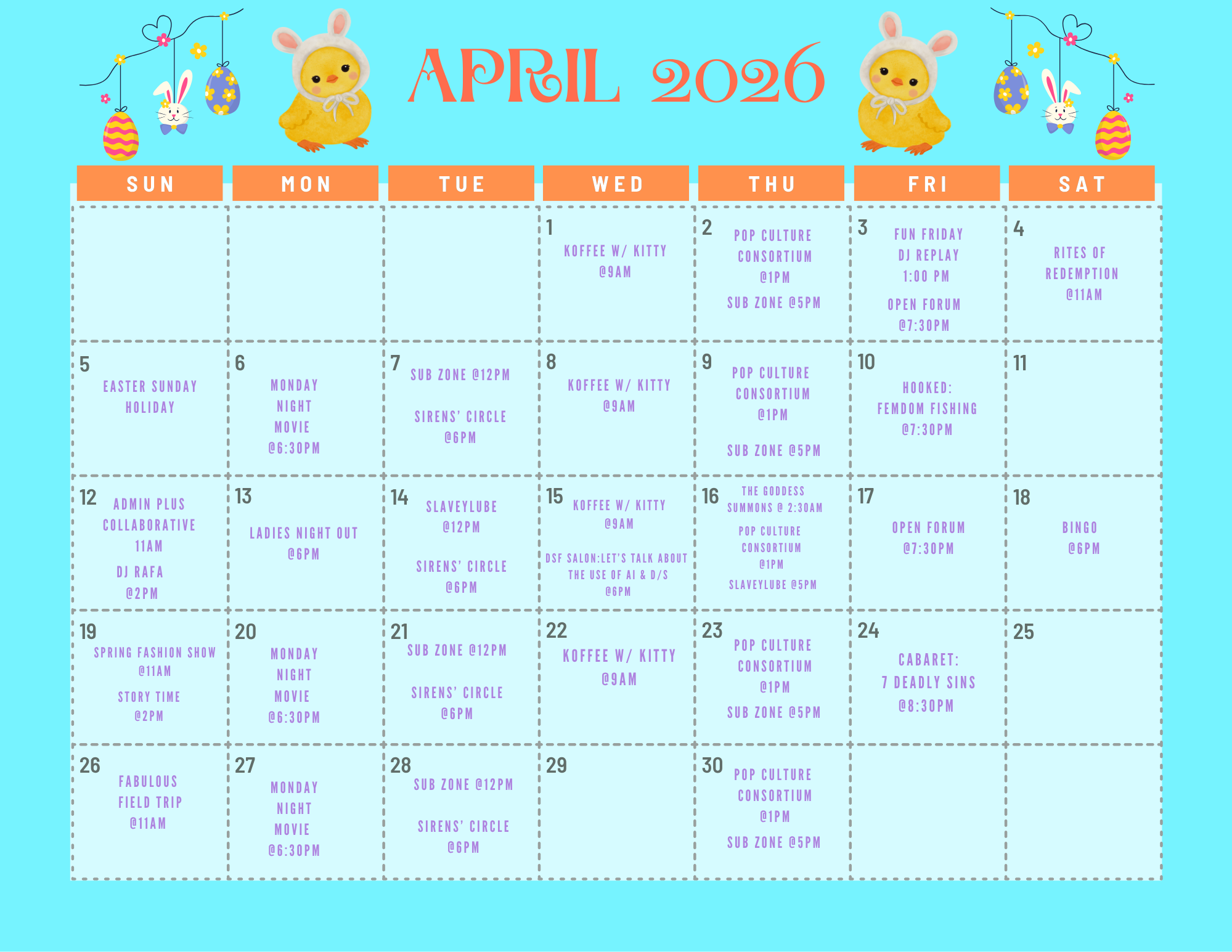 slaveyLube (tune up your submission) w/ Divine Lady Cythe – 2nd Tues @12pm 2nd Thus @5pm